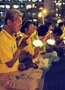 有一位陪着姐姐来参加悼念会的马来西亚华人,他说几年不见,姐姐炼了法轮功后面色变的红润,身体也硬朗了,他很疑惑中共为何要打压法轮功?也提出许多问题,诸如法轮功是不是不叫人看病,活动经费怎么来,中国大陆法轮功学员被迫害及活摘器官的消息如何取得等等,经学员一一跟他说明后,他义愤填膺的说发动这场迫害的人是个十足的笨蛋,活摘器官这件事太没人性了,他回到马来西亚一定要告诉更多的人。
