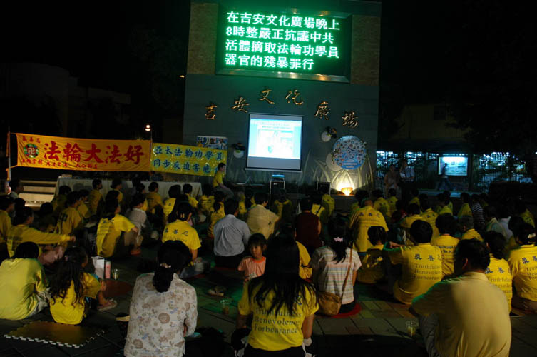 夜幕降临之际,法轮功学员用烛光排出了SOS紧急救援的字形,并点燃了手中的蜡烛。此活动组织者之一范丽莎表示,中共对法轮功的迫害已长达七年,其间,法轮功学员经历了许多魔难;面对刽子手挥舞的屠刀,法轮功学员表现出大善大忍,为了维护正义和真理,前仆后继,无怨无悔;在讲清真相和反迫害中,大法弟子越来越成熟,对大法更加坚信;也使越来越多的人们了解了法轮功,了解了大法弟子。
