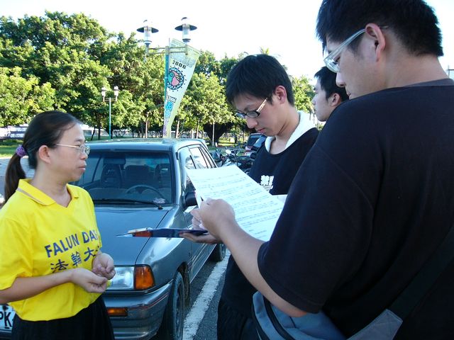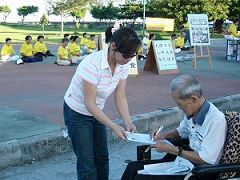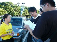 ![]() 在集会现场,民众学习法轮功 |