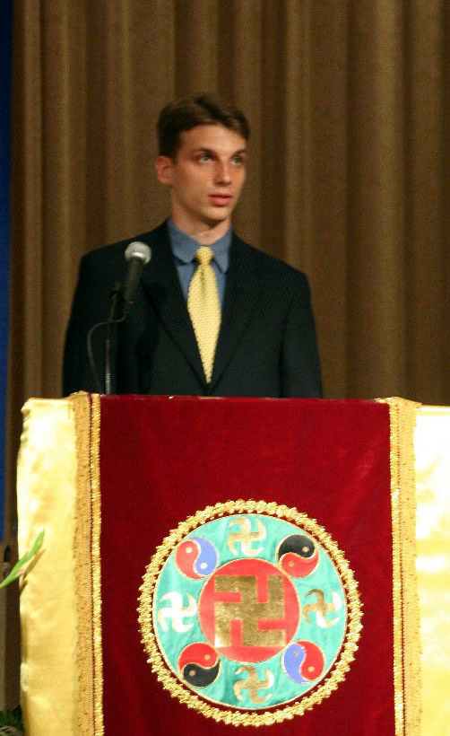 来自华盛顿DC的Brian Marple参加了新年晚会的管弦乐队的训练,他介绍了自己在在音乐中修炼的体会,在其中认识到自己的名利心和显示心,并和其他乐队成员更好的配合的经历。