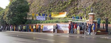 新西兰法轮功学员在中领馆前举行反迫害活动