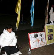 ,并点燃烛光,悼念所有被中共迫害致死的大陆同修。活动中,学员宣读了抗议书,抗议中共恶党对法轮功长达7年的迫害,抗议中共劳教所、监狱虐杀法轮功学员、活体摘取盗售法轮功学员器官的恶行,呼吁国际社会共同努力制止这场浩劫,同时声援1200万中国人民退出中共恶党组织,解体中共,结束这场邪恶的迫害。