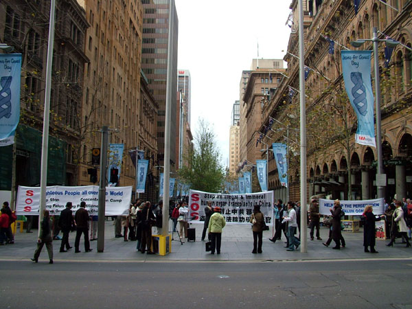 ![]() 悉尼法轮功学员在市中心举行真相长城 |
