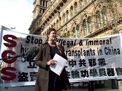 澳洲真相调查委员会的代表简•孙介绍了活摘器官事件是如何被曝光的,她说:“今年3月,一位从中国逃亡的记者最先揭露中国的集中营在抓捕法轮功学员、摘取他们的器官進行移植手术牟利,最终导致法轮功学员被迫害致死。这个可怕的指控得到了第二位证人的证实,她是一位直接参与移植手术的外科医生的前妻。接着,第三位证人,一位中国的军医证实这些指控是真实的,他指出,在中国不只一个集中营,而是有36个之多,全部由军队系统控制。”