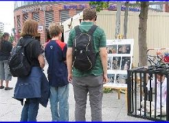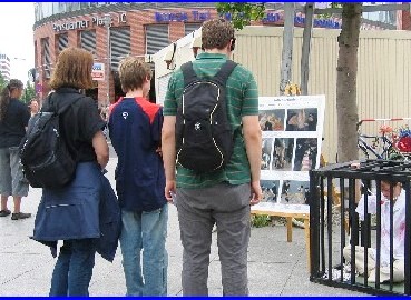 ![]() 路人关注介绍法轮功被迫害情况的展板 | ![]() 我要签名反迫害! |