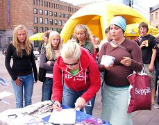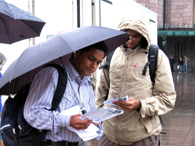 芬兰首都日报(Hufvudstadsbladet)到现场做了全面采访,7月23日发表了一篇题为:“法轮功学员抗议迫害”的专题报导。