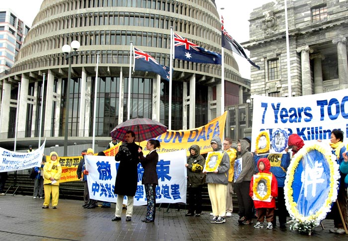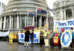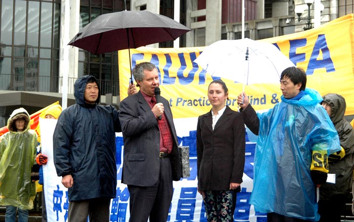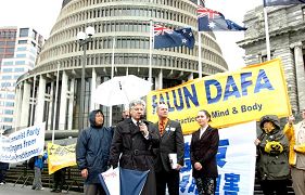 来自不同党派的三名新西兰国会议员也在集会上发表演说,表达对迫害的谴责和对法轮功人权的支持。绿党外事发言人凯思•劳克在国会外交委员会会议之前,特地赶来表示支持。