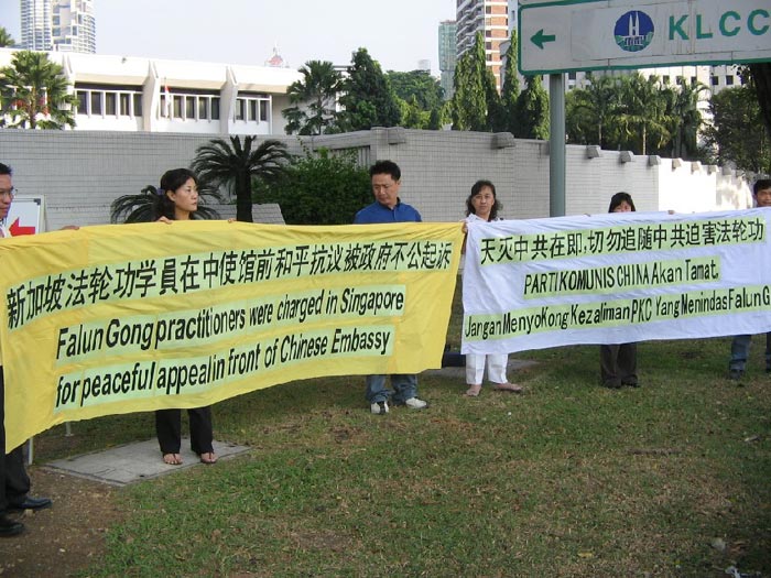 【明慧网2006年7月25日】马来西亚法轮功学员于2006年7月24日上午前往新加坡驻马最高专员署递交请愿信,呼吁新加坡政府撤销对十一名法轮功学员的起诉。