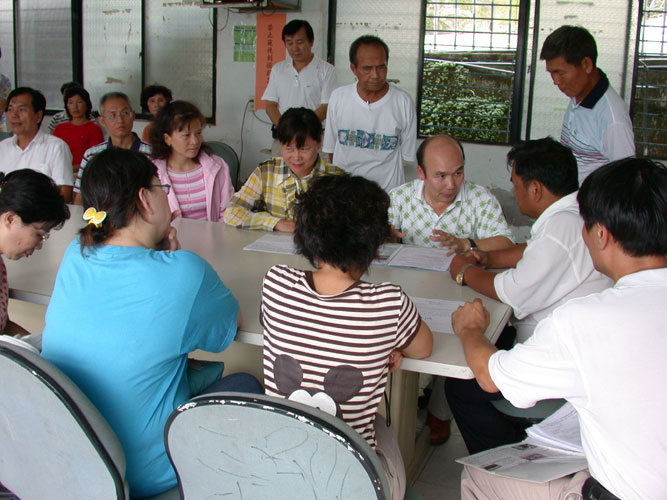 ![]() 向三和村的钟牧师讲真相 | ![]() 排湾村的杜村长仔细的听学员讲解 |