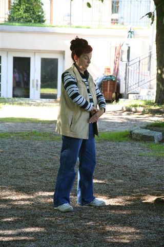 梅兰妮的恒心受到方方面面的考验。“一次一个男人褪了裤子站在我面前。”她不为所动继续炼功,终于他提上裤子溜走了。还有一次一个男人拿了“小蜜蜂”(炼功用的小录音机)就跑。一位同修赶上去,那人扔下“小蜜蜂”跑了。对梅兰妮来讲在这个热闹的地方保持炼功入静很不容易。夏天这里举办各类沙龙,一座豪华的建筑就在不远处,那儿举行音乐会,很多人来观看。流行音乐、古典音乐有时在场地上轰鸣。“过去的一年里他们挂起好多大灯或者把沙子洒在办沙龙的平台上,周围就很嘈杂。”她解释说。现在她在炼功时能够很好的入静了。“当然会听到其它音乐声,但我把精力集中在炼功音乐上就没问题。慢慢的状态就越来越好。”