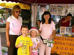 施万多夫市德语直译过来,有个好听的名字:天鹅村。在今年天鹅村千年庆典的活动上,人们欣喜的见到了祥和纯净的法轮大法,同时人们也震惊的了解到,善良的法轮功修炼者在中国已遭受了整整7年的残酷迫害,而且,中共恶党杀人害命之余,甚至盗卖法轮功学员的器官以牟取暴利。面对这令人发指的恐怖事实,不少市民表示:我们不能