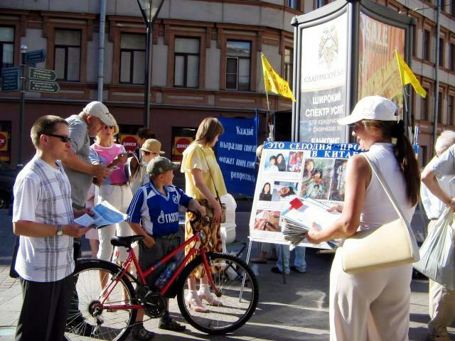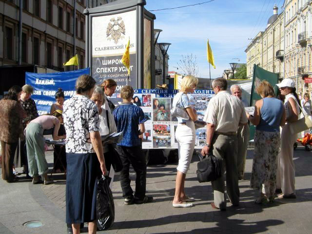 ![]() 民众认真观看展板,听学员讲真相 | ![]() 签名支持法轮功反迫害 |