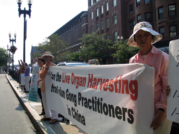 【明慧网2006年7月28日】从2006年7月23日以来,许多法轮功学员汇集到美国波士顿,给前来参加全球首届器官移植大会的六千五百名移植界的医生和学者,讲述正在中国发生的活体摘取法轮功学员器官的罪行。