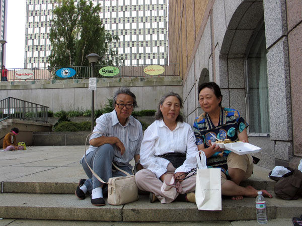 还有位从北京来的男士,开始态度很不好,他叫我走开。我笑着对他说,你排队买饭,我也买饭,我往哪走呢?于是我继续说:我给你说说你不知道的事。他就大声嚷嚷着叫我别说,我笑着小声对他说:先生,这是美国,您得注意文明。
