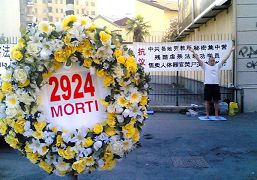 ![]() 中领馆前的抗议横幅 | ![]() 悼念被迫害致死的大陆同修 |