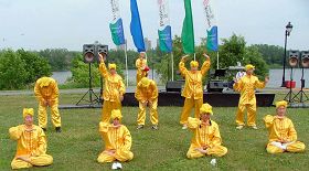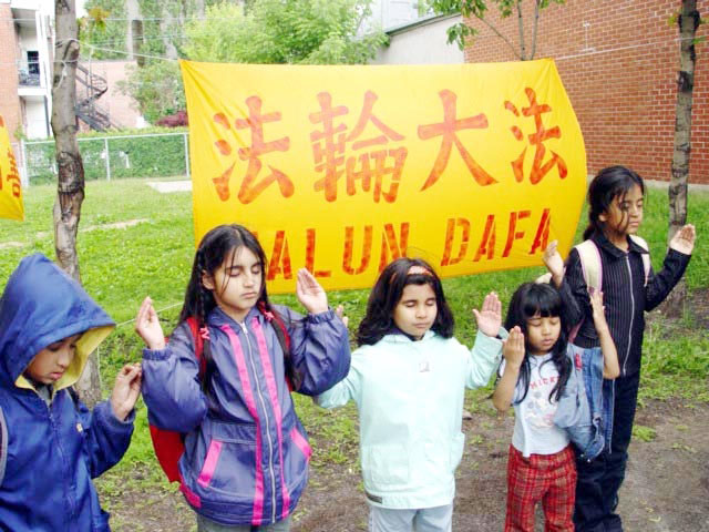 ![]() 一群孩子在2004年6月法轮功学员参加沃敦区夏季社区活动时学炼法轮功 |