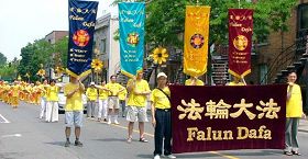 ![]() 2005年6月法轮功学员参加沃敦区夏季游行 |
