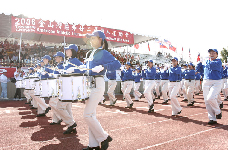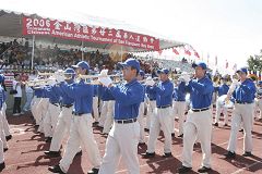 ![]() 法轮功美西天国乐团行进在开幕式中 |