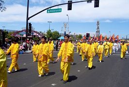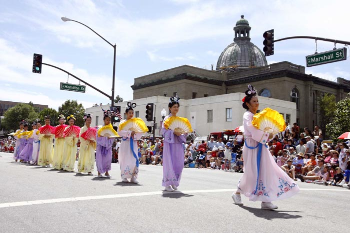 应邀参加北加州最大独立日游行 法轮功再展风采(图)