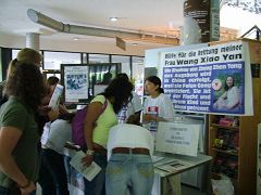从2006年7月6日开始,德国南部奥古斯堡大学的法轮功学员举行为期两周的“紧急营救法轮功学员王晓艳,制止中共活摘器官罪行”活动。