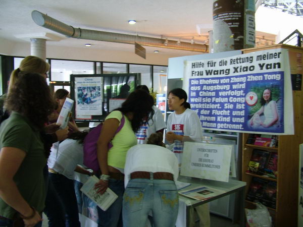 【明慧网2006年7月9日】从2006年7月6日开始,德国南部奥古斯堡大学的法轮功学员举行为期两周的“紧急营救法轮功学员王晓艳,制止中共活摘器官罪行”活动。