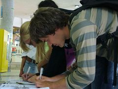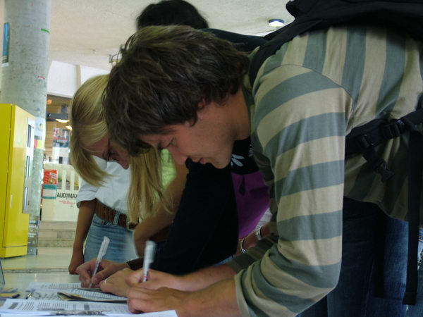 一年前王晓艳的先生张震彤曾经就读于这所大学,奥古斯堡大学很多人都认识张震彤。学生们在得知中共活摘法轮功学员器官的暴行和王晓艳被非法关押在姚家看守所的消息后,毫不犹豫纷纷在两个主题的征签簿上签名。