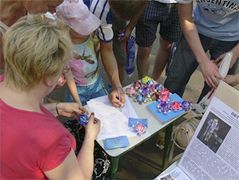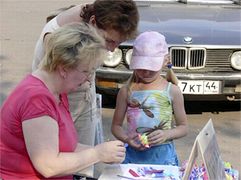 【明慧网2006年8月1日】在俄罗斯卡斯特拉玛市(Kastroma)的伏尔加(Volga)河岸边,当地法轮功学员举办了向市民和游客讲真相活动。现场有的学员一边教人折叠纸莲花一边向民众讲真相,旁边还摆放了揭露中共活体摘取法轮功学员器官罪行和其它迫害真相的展板;有的学员发资料,还有的演示法轮功五套功法。