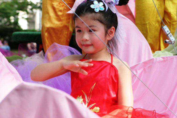 图:法轮功学员的游行队伍精彩纷呈,受到观众的欢迎