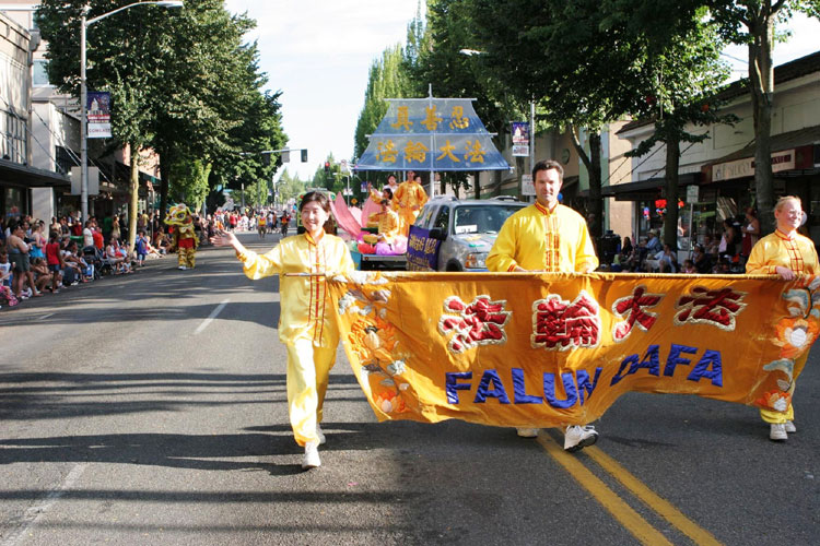 法轮功学员参加华盛顿州乡间小镇举行的游行(图)