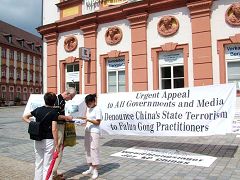 有人在仔细阅读了下午的传单内容后,在市政府为著名人士举行的晚宴散场时对学员说:“我已经全读了,谢谢你们,遗憾的是我们(以前)不知道这些信息。”当走出去10米远之后,那个德国人又回过头向学员大声说:“谢谢!谢谢!”