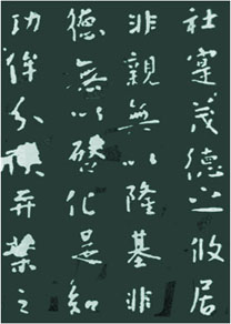 中国书法史上,以行书刻碑的首创人物是唐太宗李世民(公元599-649)。《温泉铭》便是行书入碑的代表作。李世民是中国历史上一位杰出的帝王,他不仅将封建社会推向鼎盛时期,而且身体力行地倡导书法,促使唐代书法成为中国书法史上辉煌的一页。他亲自为王羲之写传记,不惜重金搜购王羲之墨迹三千六百纸。
