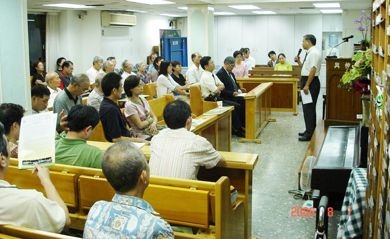 【明慧网2006年8月11日】2006年8月7日晚,台湾基督教长老教会在台北义光教会举办一场“关心中国活体器官摘除之人权问题”的专题演讲并为受迫害的大陆法轮功学员祈祷。