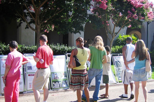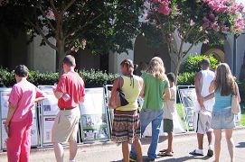 一次,有位中国游人路过展板,刚开始时他不敢接受“九评”,说他在中国政府部门工作。一个法轮功学员就耐心的劝他不要失去这样的机会,因为在国内是不易接触到真相的;如果不敢拿,可以在这里多看看、走走。这位游人后来听了中共活体摘取法轮功学员器官的真相,也接受了“九评”。