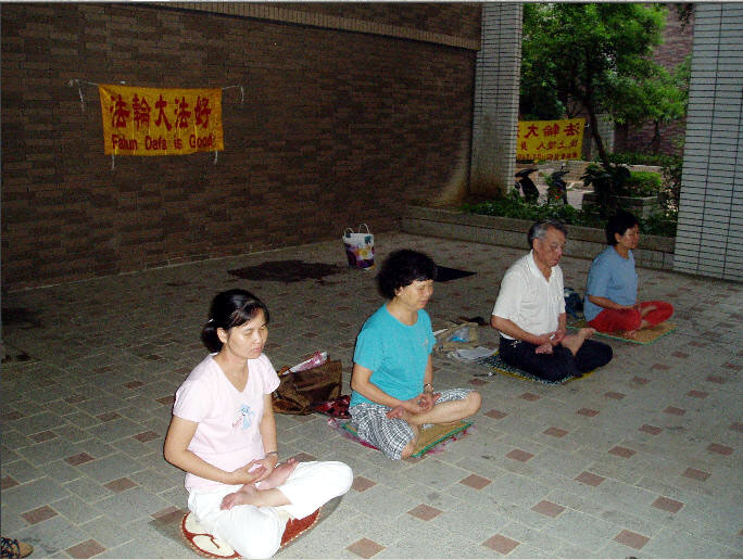 这个炼功点是由黄大姐开始的。她说:寻寻觅觅了几十年,终于找到了这高德大法,这次绝对要好好的把握住,不能错失机缘。她希望能帮助在这里的邻居建立一个修炼法轮大法的好环境,所以二年来不论刮风下雨严寒酷暑,她总是坚持不懈的到炼功点来炼功。