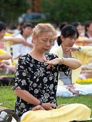 为了纠正学员的炼功动作,这次也安排了功法的解说,很多小组带来师父的教功带,边看边互相纠正,学员普遍表示收获很大,有很多不常出来炼功的学员说,炼了这么久,原来许多姿势是不正确的,看来还是要到炼功点跟大伙一起炼。