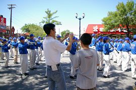 8月13日星期天,加拿大多伦多天国乐队的部份队员来到了在多伦多中区唐人街举行的华人同乐日现场。除了为观众演奏《法轮大法好》等乐曲外,还为观众演唱了《为你而来》等歌曲。