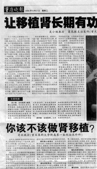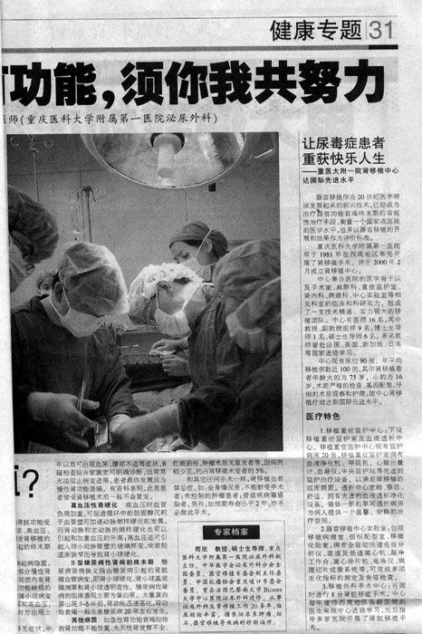 《重庆晚报》2006年8月2日,在健康专题版介绍了重庆医科大学附属第一医院。(见附图)其中,“专家”有: