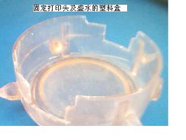 以前清洗打印头时,常遇到的问题是清洗时跑气,清洗不彻底,效果不佳。尤其是黑色打印头,由于进墨口较大,清洗效果往往很差。用这种工具和方法常常能收到好的效果。工具制作方法如图(1)。放打印头的塑料盒如图(2)。用这种塑料盒的目地是为了不损伤打印头和容易固定打印头。具体操作如图(3)。