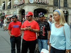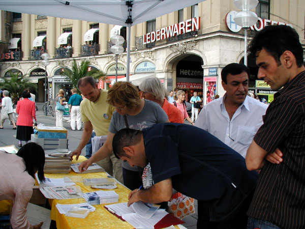 【明慧网2006年8月2日】(明慧记者德祥报道)2006年7月29日,大纪元时报和法轮功学员在德国南部最大的城市慕尼黑卡尔斯广场(Karlsplatz)举办活动,声援一千二百万人退出中共及其附属组织,同时揭露中共活体摘取法轮功学员器官的暴行,紧急呼吁全社会关注在中国被非法关押的法轮功学员的命运。