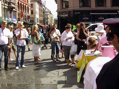 【明慧网2006年8月2日】挪威法轮功学员于2006年7月28日,在挪威首都奥斯陆市中心,以模拟演示的方式揭露中共活体摘取并出售法轮功学员器官的黑幕,呼吁挪威民众伸出援手,共同制止发生在中国的这种惨无人道的暴行。过往行人纷纷驻足观看演示,脸上流露出震惊的表情。明白真相的人们主动签名要求制止中共这一群体灭绝的罪恶。
