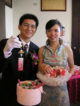 有共同的沟通语言及相处的方式下,获得双方父母的祝福,二人决定共结连理,选定2006年3月18日举行文订,同年6月25日举办婚礼。在准备订结婚的过程中,我们彼此有默契的想以表演的方式将大法的美好带给身边的亲朋好友,也让来参与的朋友们知道,人与人相处要“真诚”、“善良”与“容忍”才能和谐快乐。根据这想法拟定了婚礼的表演节目,与父母讨论、取舍后,我们准备了下面的几个节目: