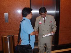 法轮功学员在得到律师公会秘书的允许后在人潮众多的礼堂外派发独立调查报告。许多律师在接获调查报告时表示听说过法轮功;有些律师跟学员友善的讨论着关于法轮功人权的话题;也有的律师看到人手一份的调查报告,主动到学员处领取。
