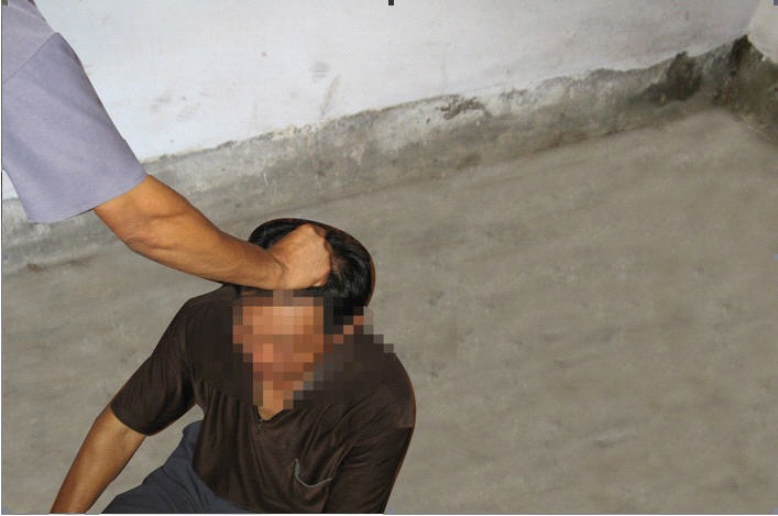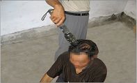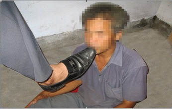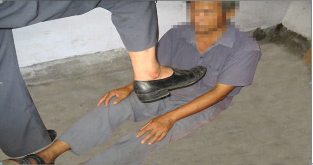 酷刑演示图:恶警秦洁一脚就将他的两颗门牙踢掉,