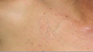 上图:此锁子骨两处是被恶警秦洁用穿着皮鞋的脚踢的,