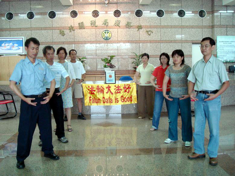 我们的炼功点以“法轮功研习社”的名义向单位的“同仁进修会”登记在案,得到政府许可肯定。在财政部关税总局内部资讯网上,我们将《转法轮》以“中翻英 ”学英文的方式,将法轮大法“真、善、忍”的祥和美好介绍给同事。