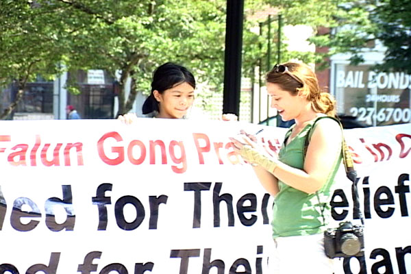 一位当地警察听完汽车之旅成员的讲述很感动,说:“我要把这件事告诉我的孩子。”她主动向学员要了资料,说要发给附近在政府工作的人。两名美国联邦调查局(FBI)的工作人员也来到了现场。他们说他们知道美国的法轮功学员有时会受到中共特务的骚扰,他们来这里确定一下法轮功学员不会被骚扰。一位工作人员给了汽车之旅成员他的名片,说如果将来遇到什么事情可以找他们。