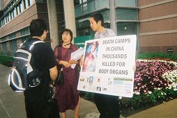 在这里还发生了一个小插曲。一些不明真相的中国人找到一位正在讲真相的学员,说道:“我是个医生,你在这里丢中国人的脸。”这位学员正好也是位医生,她回答到:“很多医生和你的看法正好不一样,医生的职责是救人不是杀人,是干这件事的人错了,还是揭露这件事的人做得不对?”