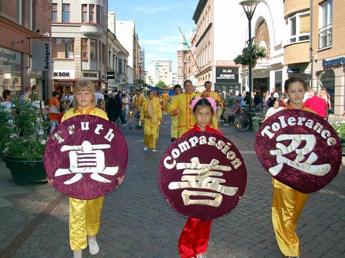 【明慧网2006年8月28日】2006年8月19日,瑞典第三大城市——马尔默市,一年一度的文化节拉开了序幕。众多具有不同民族和不同国家背景的团体参加了该活动,为本次文化节增添了多元色彩。法轮功学员组成的腰鼓队和仙女舞蹈队,精美的花车,和花车上祥和的功法演示,格外的引起了人们的注意。“太美了”的评语不时的从观众中传来……