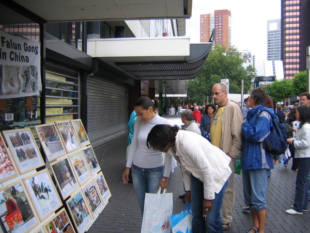 过路的行人纷纷驻足观看,许多民众说他们已看过荷兰电视台有关中共活摘法轮功学员器官的相关报导。今天再听到学员们面对面讲真相,让他们对中共这种令人发指的罪行感到无法形容的难过和震惊。人们纷纷签名呼吁制止迫害并鼓励学员们继续向荷兰民众揭露中共践踏人权的恶行。