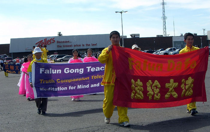 ![]() 法轮功学员以横幅开道 |